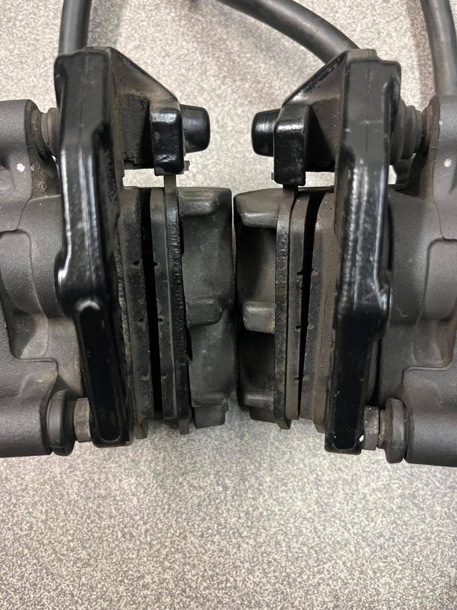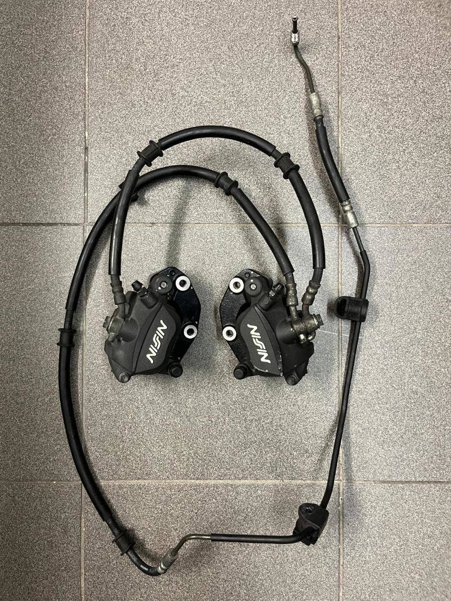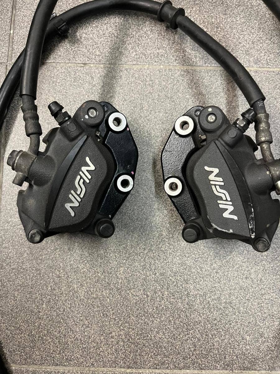 pravý brzdový třmen ok 1500, levý brzdový třmen kosmetika viz. foto 1200, brzdová hadice 500, destičky 600,